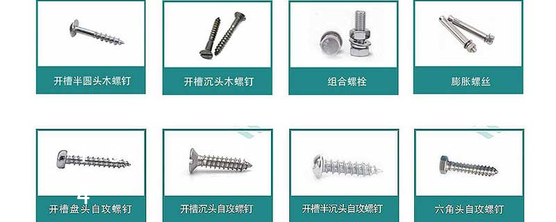 2.開槽球面圓柱端軸位螺釘2.5 木螺釘1.開槽圓頭木螺釘2.開槽沉頭木螺釘3.開槽半沉頭木螺釘4.六角頭木螺釘5.十字槽圓頭木螺釘6.十字槽沉頭木螺釘7.十字槽半沉頭木螺釘2.6 自攻螺釘1.十字槽沉頭自攻螺釘2.自攻螺釘(金屬薄板用螺釘)3.六角頭自攻螺釘4.開槽盤頭自攻螺釘5.開槽沉頭自攻螺釘6.開槽半沉頭自攻